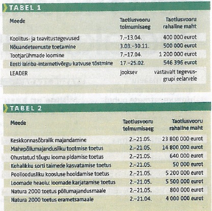 See kõik ei tähenda, et 2014. aastal üldse maaelutoetusi ei antaks. Tänavu toimuvad taotlusvoorud nende meetmete raames, kus on veel järele jäänud perioodi 2007-2013 vahendeid (tabel 1).