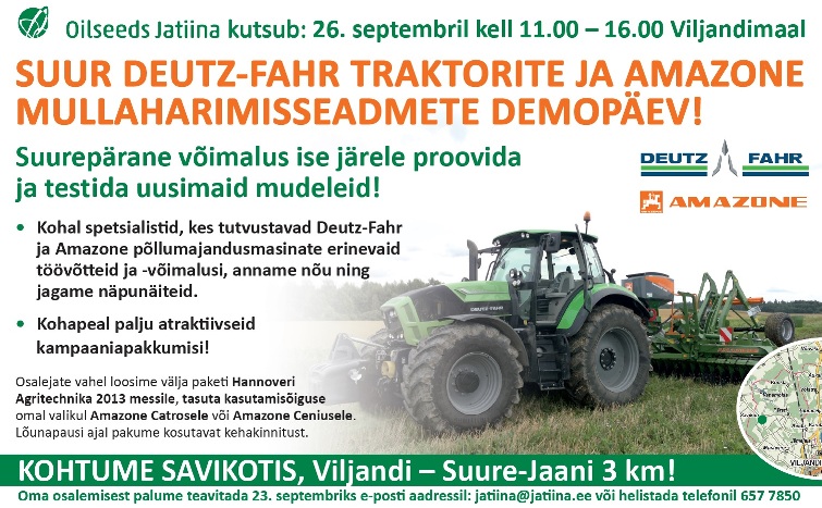 Oilseeds Jatiina traktorite ja mullaharimisseadmete demopäev